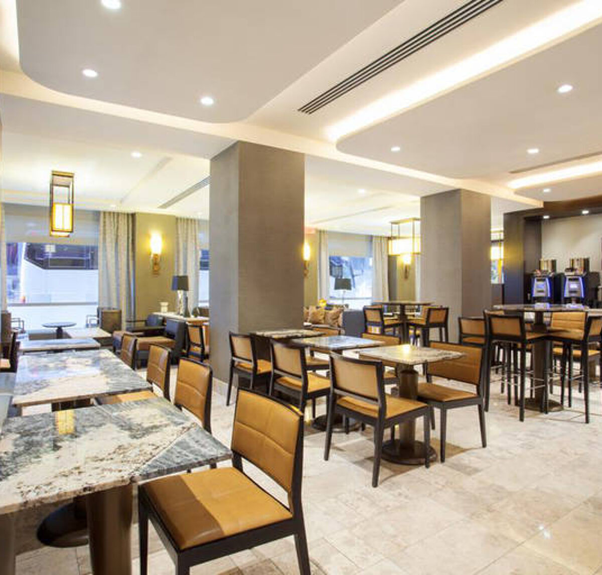In het New York Hilton Midtown kun je genieten van een verscheidenheid aan culinaire ervaringen. Het hotel beschikt over een à-la-carterestaurant 'Herb N'Kitchen' waar vakantiegangers tegen betaling kunnen genieten van heerlijke gerechten. Daarnaast biedt het hotel drie bars, waaronder een cocktailbar, hotelbar en lobbybar, perfect voor een ontspannen drankje na een dag verkennen. Hoewel maaltijden zonder specifieke verzorging zijn, biedt de aanwezigheid van deze eet- en drinkgelegenheden vakantiegangers voldoende opties om hun dorst en honger te stillen.