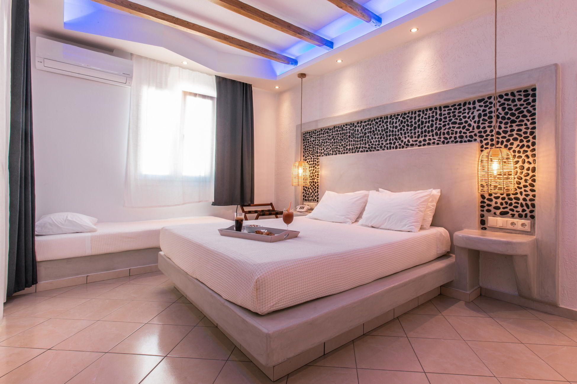 Bij Hotel Mikri Vigla verblijf je in een sfeervol bungalowcomplex dat perfect is voor een strandvakantie met het hele gezin. Het complex ligt direct aan het zandstrand, waardoor je 's ochtends meteen kunt genieten van de zee. De comfortabele kamers en de vele faciliteiten zorgen dat je je snel thuis voelt. Of je nu rust zoekt of lekker actief wilt zijn, dit hotel biedt alles voor een ontspannen vakantie op Naxos.