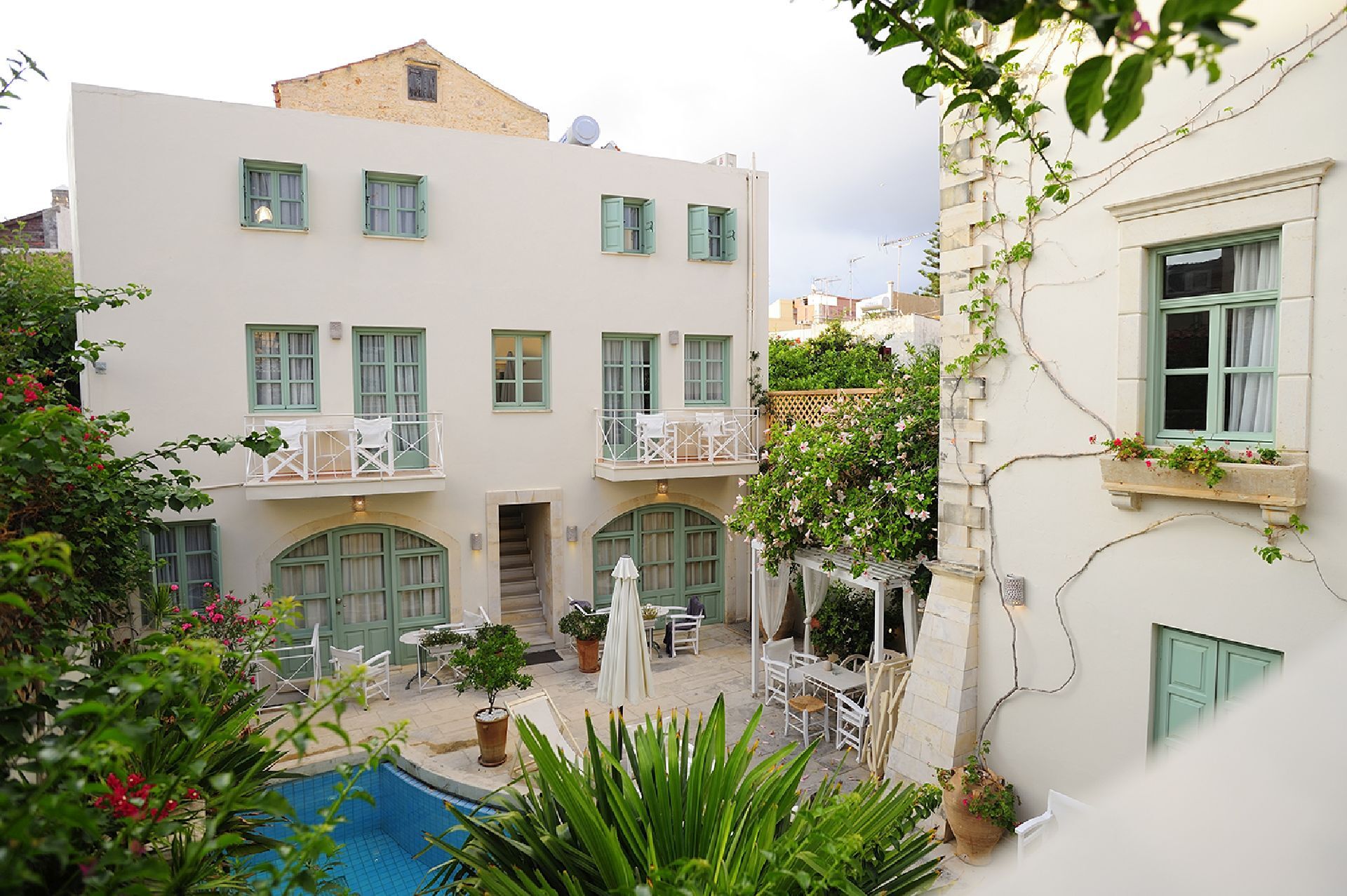 Wanneer je bij Mythos Suites Hotel binnenstapt, voel je je meteen welkom. De rustige binnenplaats met een klein zwemmeertje geeft je dat internationale boetiekgevoel, alsof je in een gezellige, zonnige oase bent beland. De tien ruime suites zijn licht en comfortabel ingericht, met alles wat je nodig hebt voor een relaxed verblijf. Je kunt gebruik maken van de buitenzwembad, de tuin voor een wandeling, en de bibliotheek voor een rustig moment. Het helpt dat er meertalig personeel is dat klaarstaat om je te helpen, of je nu een excursie wil boeken of een taxi nodig hebt. Fijn is ook dat je vanaf het hotel makkelijk een fiets kunt huren om de omgeving te verkennen of gewoon lekker door de oude stad te fietsen.