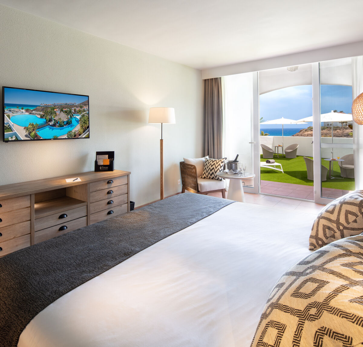 Ontsnap naar het paradijs bij Fuerteventura Princess, een juweeltje direct aan het fijne witte zandstrand van Esquinzo. Met een adembenemend uitzicht over de oceaan, uitgestrekte zwembaden en directe toegang tot het strand, biedt dit hotel de ultieme strandvakantie-ervaring. Een perfecte mix van ontspanning en avontuur wacht op jou!