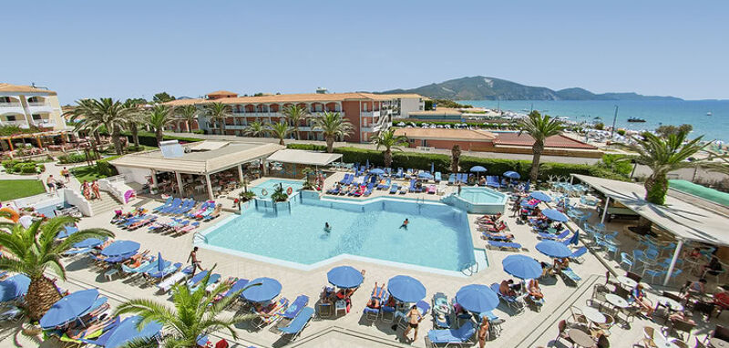 Ontsnap naar het paradijs bij Poseidon Beach Hotel, direct gelegen aan het adembenemende strand van Laganas, Zakynthos. Hier vind je het ultieme vakantiegevoel met een sprankelend zwembad en het zachte zandstrand binnen handbereik. Een plek waar zon, zee en ontspanning samenkomen.